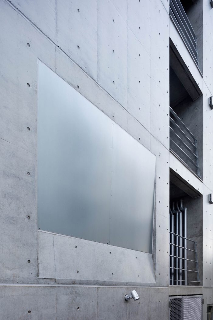 Basically, the form used is a square that can be easily recognized in a primitive way, and it is developed into openings and hollow walls that resemble a valley, so that the people of the city and the residents can be reminded of one world view. The hot-dip galvanized sheets in the openings and recessed walls reflect the weather conditions of each day, as well as the automobiles, bicycles, and people that pass by constantly.
