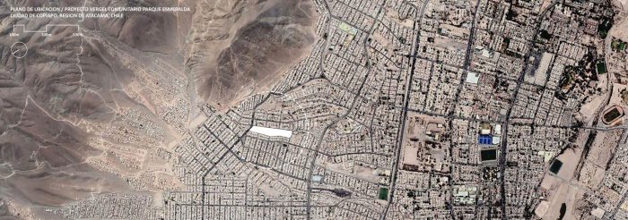 From a landfill to Vergel in the desert. Parque Esmeralda is located in the piedmont of Copiapó city, Northern Chile. The Park is in one of the last peripheral social housing developments on the north side of this town, at the border with the Atacama Desert.