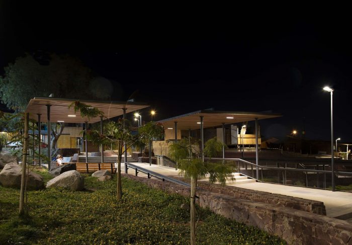 In the longitudinal direction and given the steep slope (42m of unevenness), the park is projected based on terraces with rocks from local stonemasons, which give rise to multiple viewpoints of the Copiapo Valley.