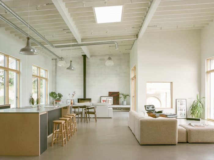 The brief was to use everyday fixtures and objects to create something special - instilling the quality of the utilitarian and industrial aesthetic into a domestic setting. Internally, the house celebrates local materials by featuring bare concrete blocks, revealing the beauty in the stonemasonry of the region. With exposed galvanized conduits, ductwork, and industrial light fittings, the architecture is truthful to the unembellished infrastructure that powers it.
