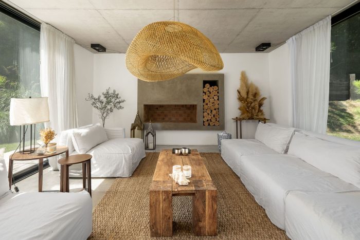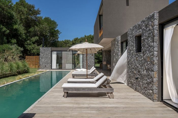 The interior design of the house was designed by the owner herself, Mayra Garabento, owner of the exclusive furniture brand, Casa Esteña. Name that took the house in its entirety. Casa Esteña is one of those forever homes, a fortress among green pastures to enjoy the environment and the spirit of the beach.