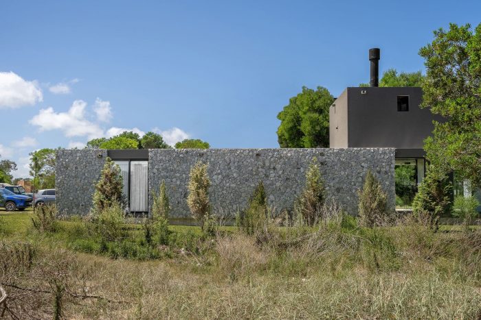 The project was executed in Costa Esmeralda, a private development with 1000 ha and more than 3 km of Atlantic coast, 390 km away from the city of Buenos Aires (Barrio Golf II - Lot 438) The project was born after the analysis of the topography. The existing land was 1.5 meters below street level, being the lowest point of the dune, while the lot immediately adjacent to it had a height of 8 meters above street level.