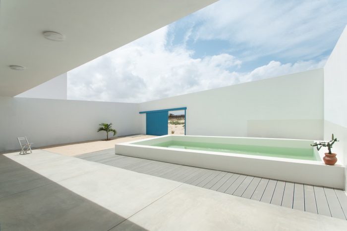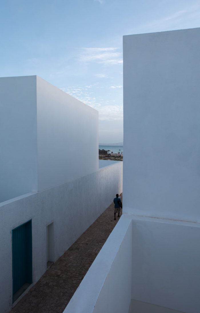The units have two or three bedrooms and a courtyard. The walls surrounding the courtyards provide a private and intimate atmosphere, as well as a protection from the wind and the sand from the beach.