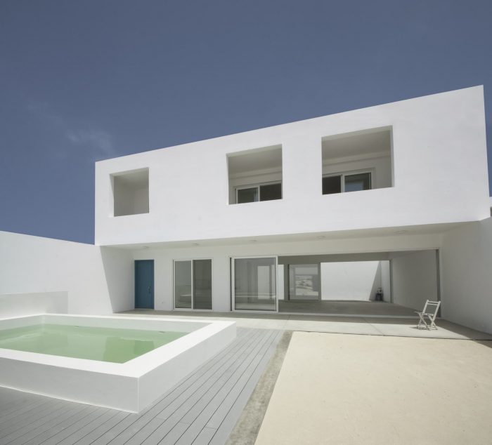 The finishing of the houses is simple and informal. The paving is made of weak concrete, the walls and the ceilings are plastered and painted in white and the aluminium frameworks are lacquered in matt white. The concept of the house was designed to reflect the casual and relaxed living of a beach house.