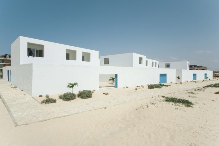 The residential project consists of 18 detached houses, creating a small residential area located in the middle of an alley connecting the houses directly to the seafront promenade of Sal Rei and to the beach.