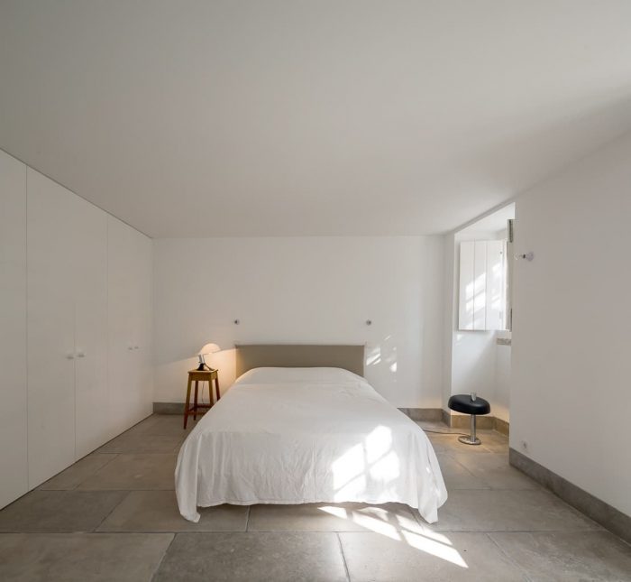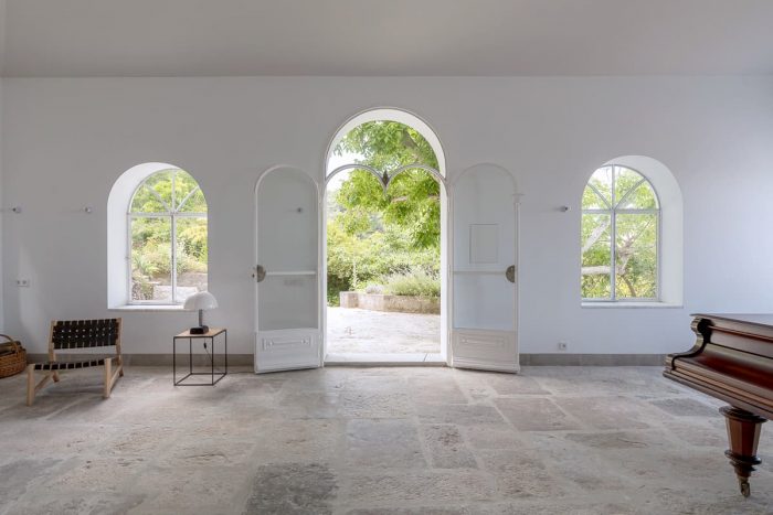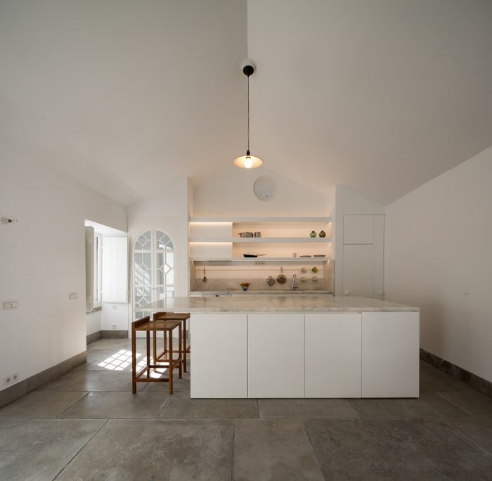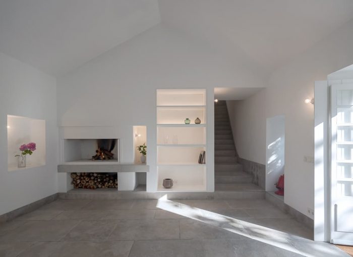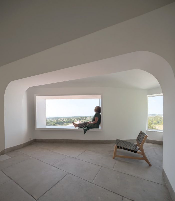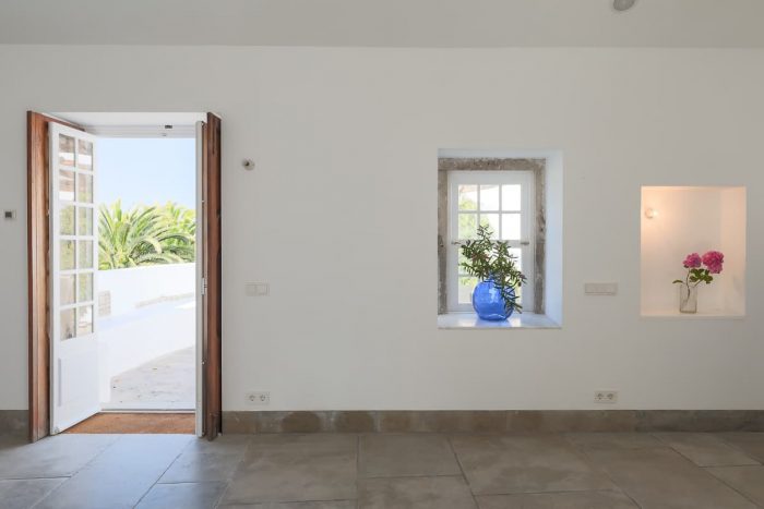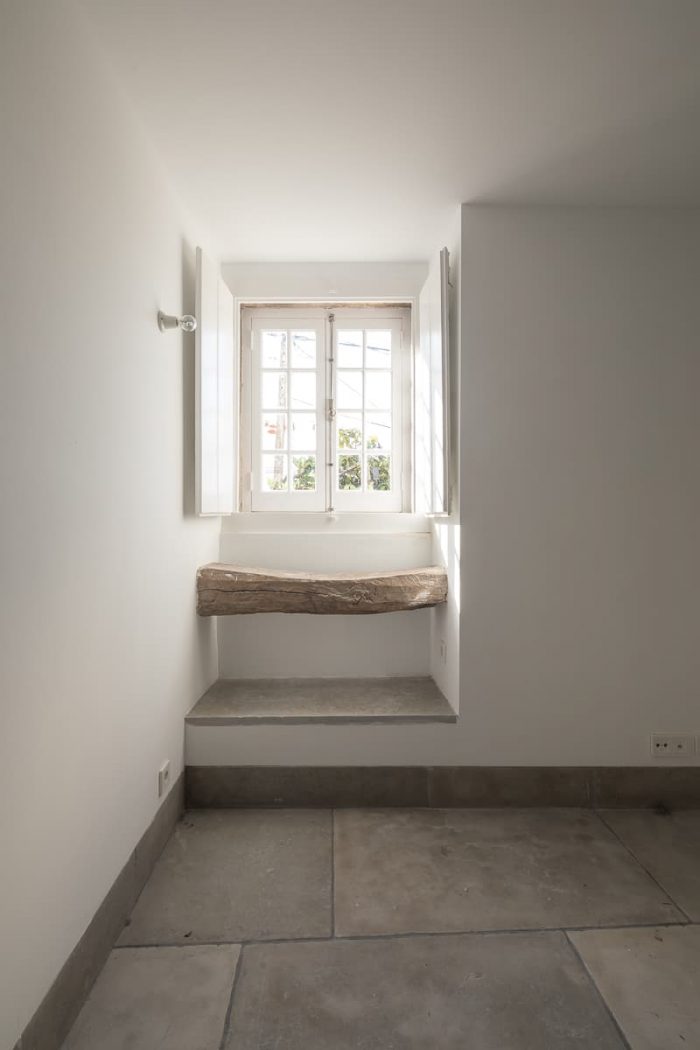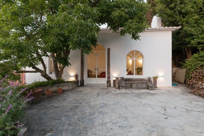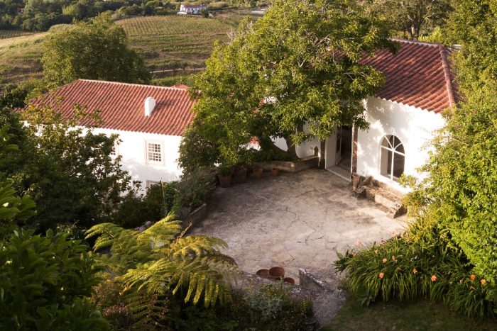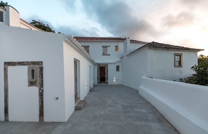 This house, which is located on terraced land on the northern slopes of the Serra de Sintra, had undergone a series of modifications over the years. All of the houses in the village of Eugaria were built in the same way, creating a settlement with a unique identity and feel. The house is at the heart of a property that includes a terraced garden, pathways, growing areas, wellheads, courtyards and terraces, seeming to merge gradually into the woodland that swathes the hillside beyond.