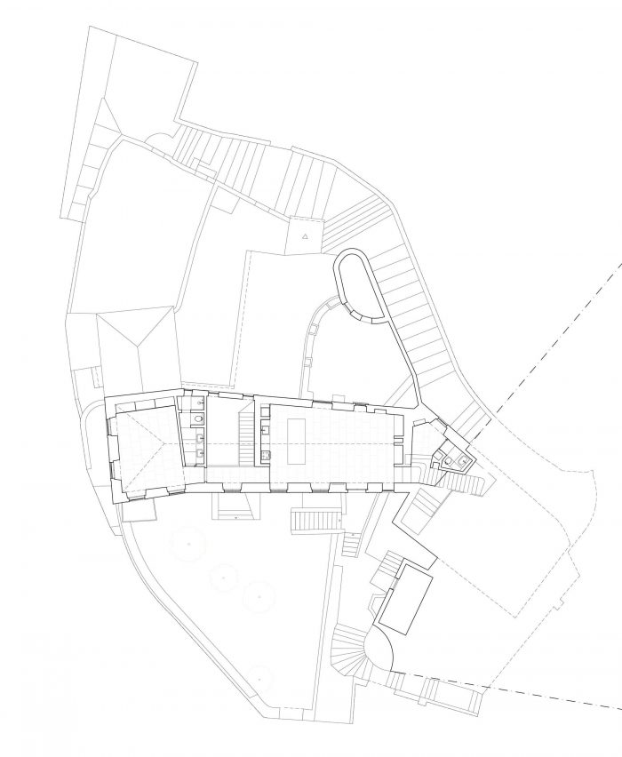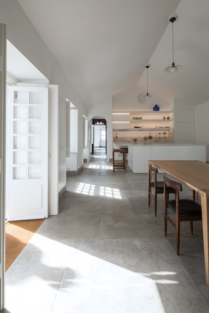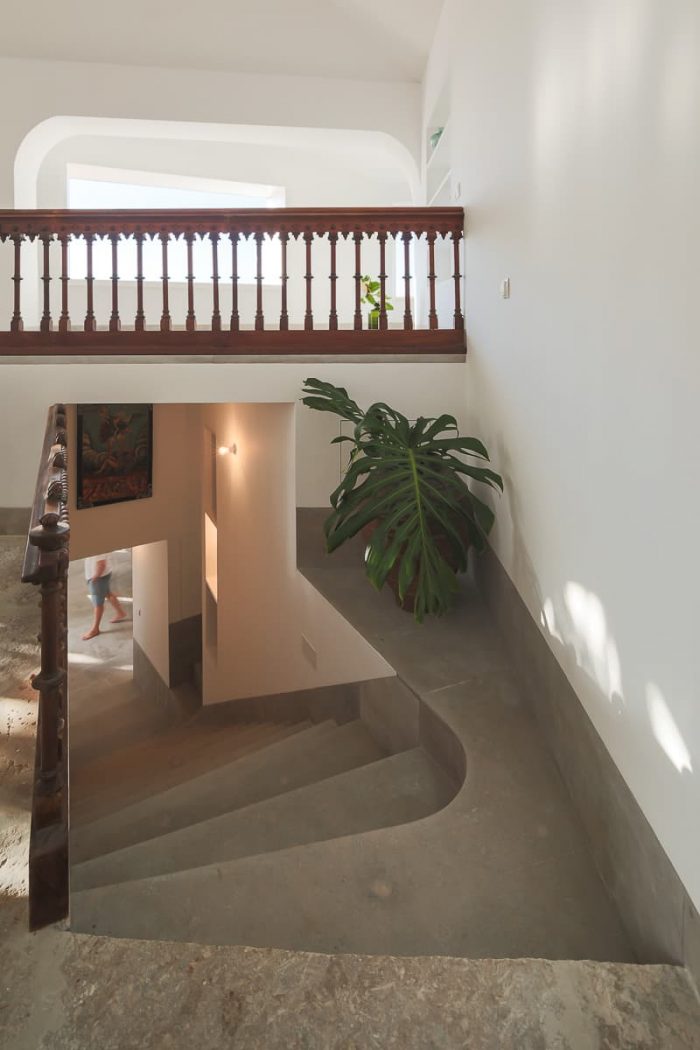 在20世纪80年代,房子经历了一次全面的翻新,因此只有外墙没有受到破坏。在内部,它是用混凝土板和砖砌成的,与原来的结构不一致,基本上没有解决基本的舒适问题,留下了保温不足和过度潮湿。在80年代,房子和整个庄园最引人注目的特点之一是其异国情调。这源于生活在花园里的物种的多样性,以及与Quinta da Regaleira相呼应的设计特征,这些特征在建筑阶段就被纳入了房屋,如木门、金属窗框和扶手。新的干预措施试图保持房子的这些独特的特征。整个内部被重建,在不同的楼层之间创造新的关系,为新定义的房间开辟空间,并引入明亮的新地板以增加舒适感。
