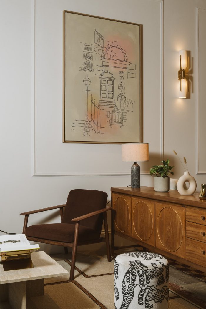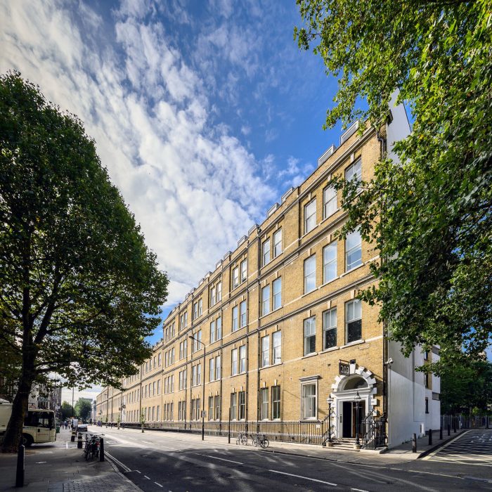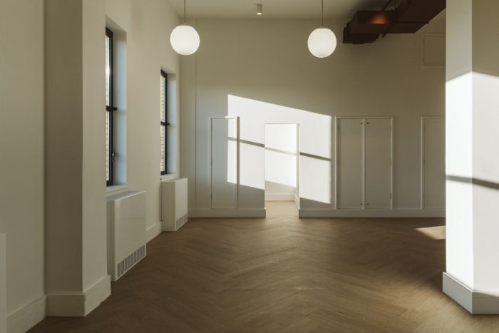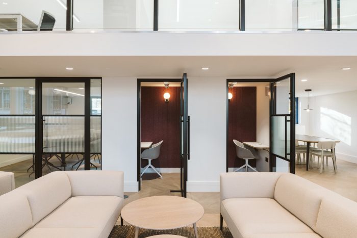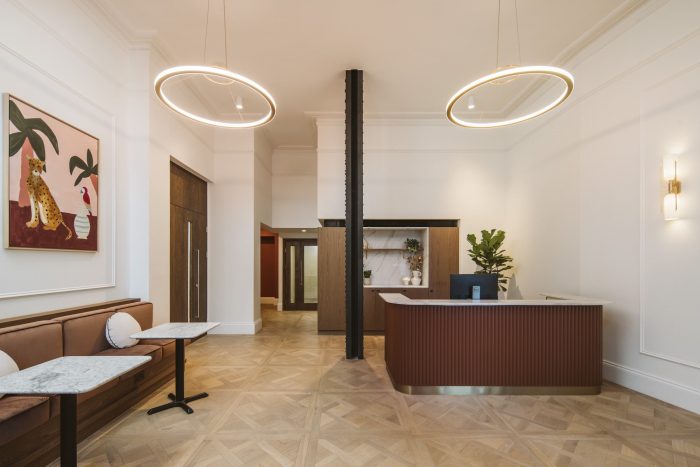 The use of heritage colours, such as Racing Green, Deep Aubergine, and Terracotta, tied the buildings together, while timber parquet flooring and reintroduced cornicing added warmth and character. These thoughtful design choices create a balance between the historical significance of the building and the comfort and functionality required for modern office spaces.
