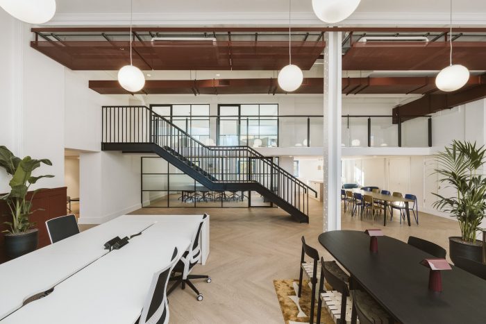 工作区内的吊式球形灯被拆除,以营造更人性化的氛围,同时也是对该建筑作为分拣办公室的最初设计的微妙回溯。与现代办公室中普遍采用的条形灯相比,这种设计更显与众不同。