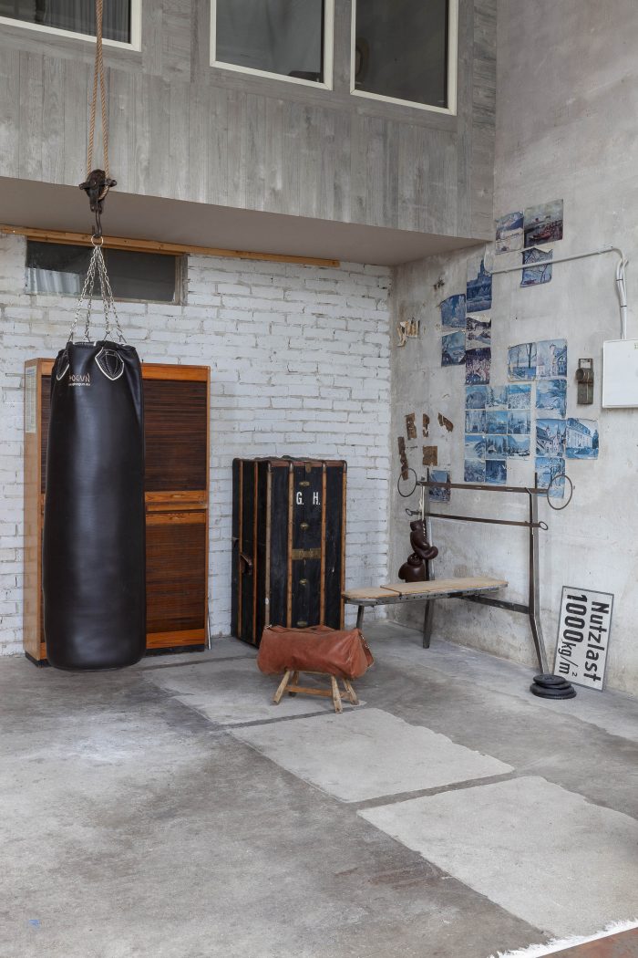 Searching for traces and remnants of the past as well as studying the broadly understood problem of memory – are all recurring themes developed by Ewelina in her art. The building’s space conceals a plethora of traces and imprints of human labor and history, the couple wished to preserve. Partially painted in white, the dwelling’s exposed concrete structures, imbues the studio with a soothing austerity, enhanced by the large loft windows that bathe the space with an ever-changing peplum of natural light.