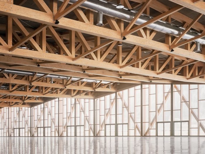 The structural grid is the project’s leading factor and defines the interiors: a light-weight construction, easily recognizable by the shape of the roof, the very distinctive feature of the building.