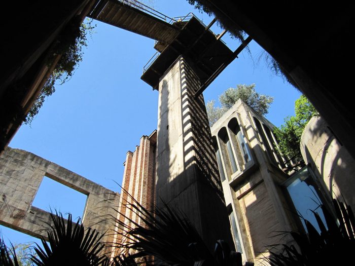 In 1973 Ricardo Bofill found a disused cement factory, an industrial complex from the turn of the century consisting of over 30 silos, subterranean galleries and huge machine rooms, and he decided to transform it into the head office of Taller de Arquitectura. Remodelling work lasted two years. The factory, abandoned and partially in ruins, was a compendium of surrealist elements: stairs that climbed up to nowhere, mighty reinforced concrete structures that sustained nothing, pieces of iron hanging in the air, huge empty spaces filled nonetheless with magic.