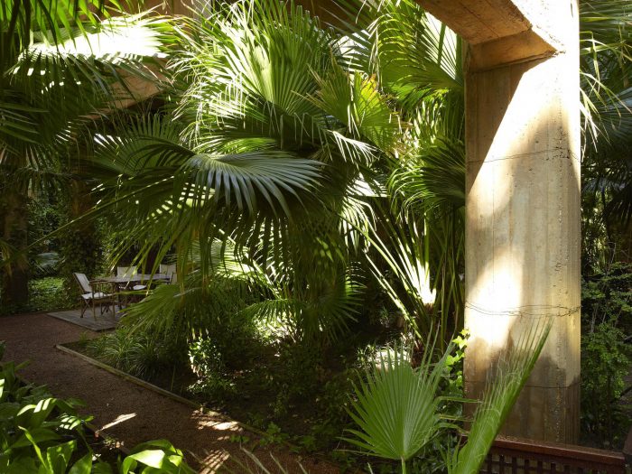 改造过程从拆除部分旧结构开始,使迄今为止被掩盖的形式清晰可见,就像混凝土被雕琢过一样。一旦空间被界定,水泥被清理,并被新的绿色植物所包围,就开始了适应新方案的过程。八个筒仓被保留下来,成为办公室、模型实验室、档案馆、图书馆、放映室和一个被称为 "大教堂 "的巨大空间,用于展览、音乐会和与建筑师的专业活动相关的一系列文化功能。该建筑群矗立在有桉树、棕榈树、橄榄树和柏树的花园中。这个项目证明了这样一个事实:一个富有想象力的建筑师可以使任何空间适应新的功能,不管它与原来的功能有多么不同。