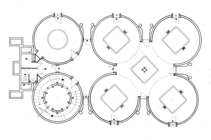 The transformation process began with the demolition of part of the old structure to leave hitherto concealed forms visible, as if the concrete had been sculpted. Once the spaces had been defined, cleaned of cement and encompassed by new greenery, the process began of adaptation to the new programme. Eight silos remained, which became offices, a models laboratory, archives, a library, a projections room and a gigantic space known as "The Cathedral", used for exhibitions, concerts and a whole range of cultural functions linked to the professional activities of the architect. The complex stands in the midst of gardens with eucalyptus, palms, olive trees and cypresses. This project is evidence of the fact that an imaginative architect may adapt any space to a new function, no matter how different it may be from the original one.