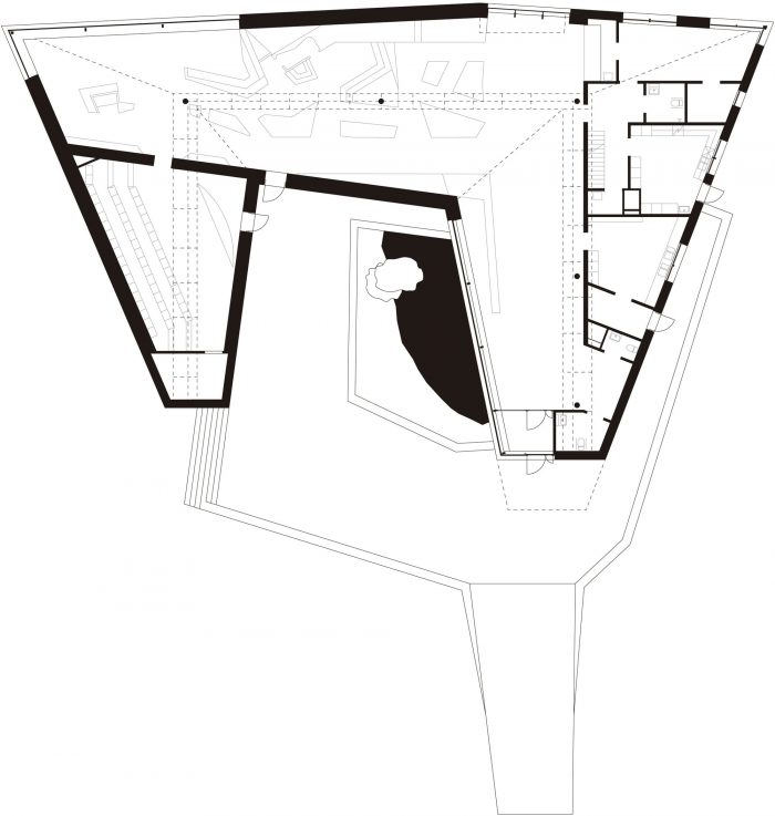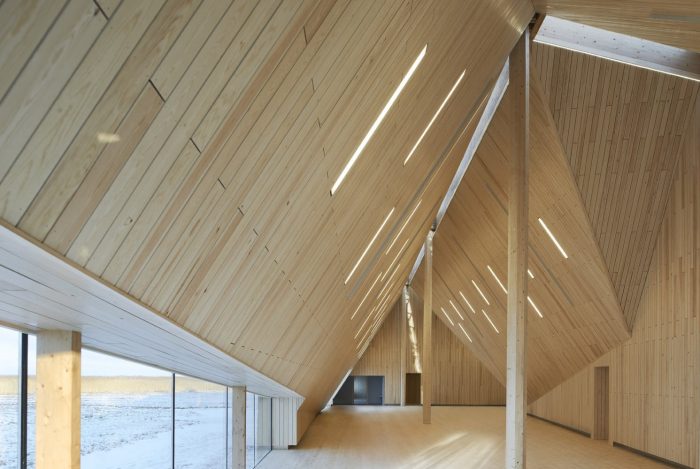 Among the many exhibits is an aquarium that joins the interior of the visitor center with the pond that has been advantageously exposed next to the building. The center has a closed, sheltering form, resulting in minimal energy consumption. A few strategically placed generous openings connect the building with its surroundings.