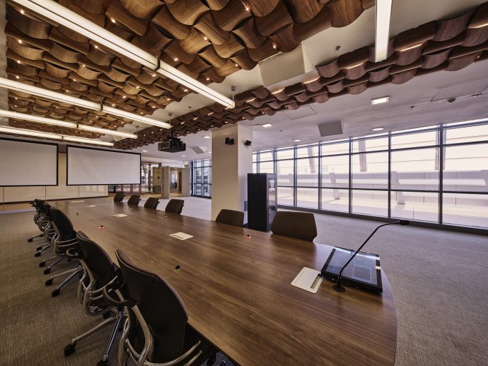 南面和西面的百叶窗系统比较严密,在保持室内舒适度的同时,仍然可以看到外面的景色。在内部,COLS是围绕着充满活力的多层中庭组织的,其中一个中庭专注于学生服务,包括一个美食广场和非正式会议区,另一个则更多地面向公众,在演示实验室和实习诊所中可以看到学生工作的多样性。它们为COLS的所有活动提供了窗口,促进了学生/教师的互动。每个中庭的周边都有一个缓缓倾斜的螺旋形楼梯,提供通往各层的通道,最后是一个圆顶天窗形式的椭圆。促进学生合作、非正式学习、社会联系,以及对内部工作的庆祝,是学院围绕两个实质性中庭组织的指导原则。
