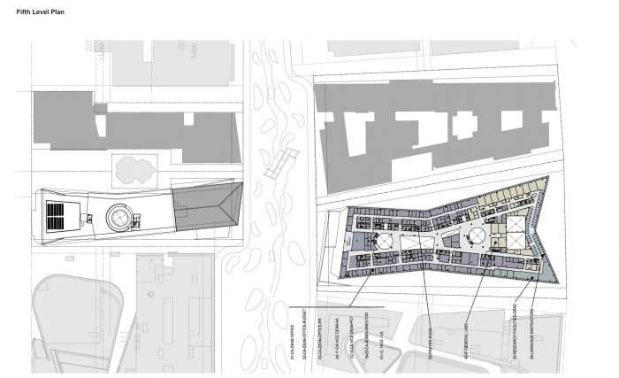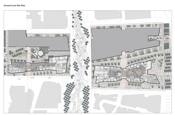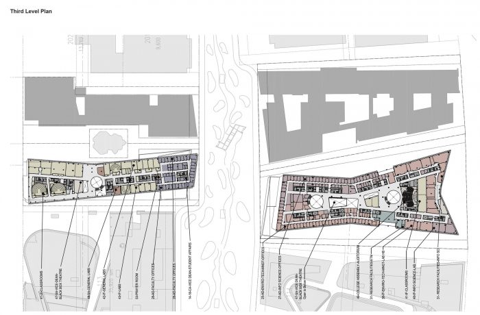 学院的流通是沿着两个南北平行的侧翼组织的,侧翼位于中庭。这些流通路径是学院的知识和教学核心,与贯穿校园、连接各学院的东西向长廊相交。这些交汇点构成了COLS内部身份的枢纽。学生生活活动围绕这些节点进行,包括餐饮服务、零售、学生俱乐部、休息室、展览厅和大型讲座设施。