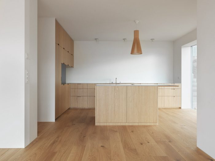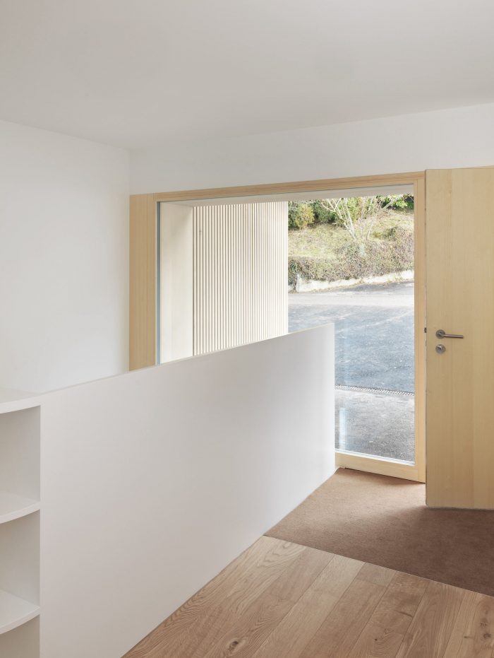 This articulation defines the exterior entrance area, whilst also creating a visual filter between the public and private domains. The interior staircase, bathed in natural light, connects the floors as well as creating a visual opening from the rear to the front of the house. Much of the lower ground floor has been freed from any partitioning providing a space generously open to the landscape.