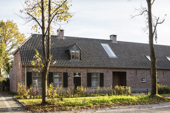 This typical dutch long-gabled farmhouse is located in a protected village and has cultural and historical value. For the renovation, we designed the farmhouse in such a way that towards the village, the historic appearance is preserved and strengthened, but towards the spacious and deep backyard the building unfolds as a modern villa. Both on the outside and on the inside, a contrast has been applied: between historic and contemporary, between seclusion and openness.