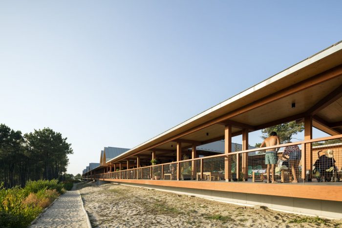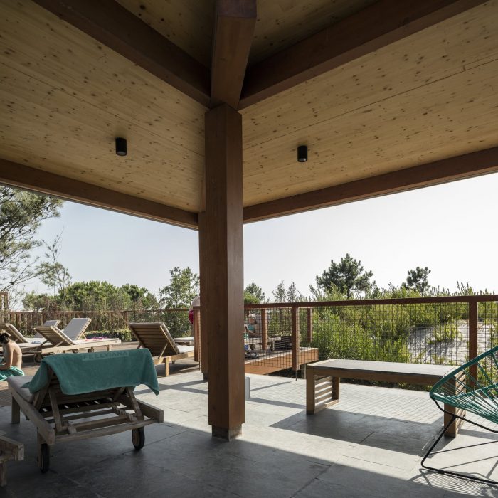 There will be no hotel rooms as such, something rather different is intended. Small houses of different sizes, almost identical but only similar, will be assembled - carefully distributed between the pine trees, where there is sufficient space for them to be inserted. Further south, there will be a line of small apartments, erected on the sand dune itself, thereby solidifying and preserving it. In the centre, further back, but with good sun exposure, there will be a larger volume, integrated within the volumes of the other constructions and the sand dune - that will house a swimming pool and a facility today known as a SPA. This facility will make it possible to use and enjoy tranquil contact with water - which of course is not what everyone is looking for. By contrast, the sea will enable more radical contacts, whereas the swimming pool provides a calmer environment.