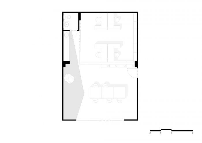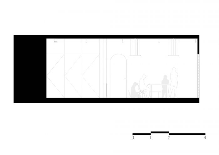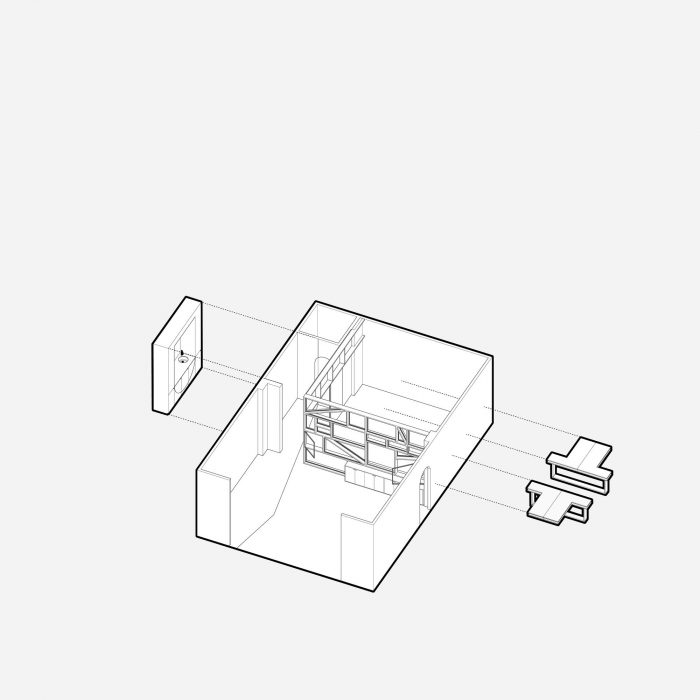 内部空间的设计和功能动态由功利性的家具来衔接,这些家具是由架子发展而来的,有一套固定的桌子、存储单元和允许灵活使用的滑动门。材料、制造和施工方法是专门为该项目应该实现的执行类型而设计的。