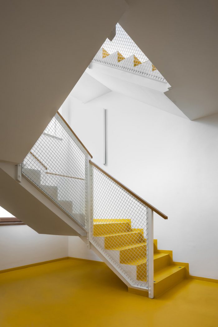 The building has been designed to be as self-sufficient as possible in respect of the mountain environment – the only supplied utility is power. Heating is based on a groundwater heat pump, common areas are equipped with air recuperation, water comes from its own well with water-supplying equipment, and wastewater will be disposed to a domestic sewage treatment plant with cleaned water absorption to the ground.