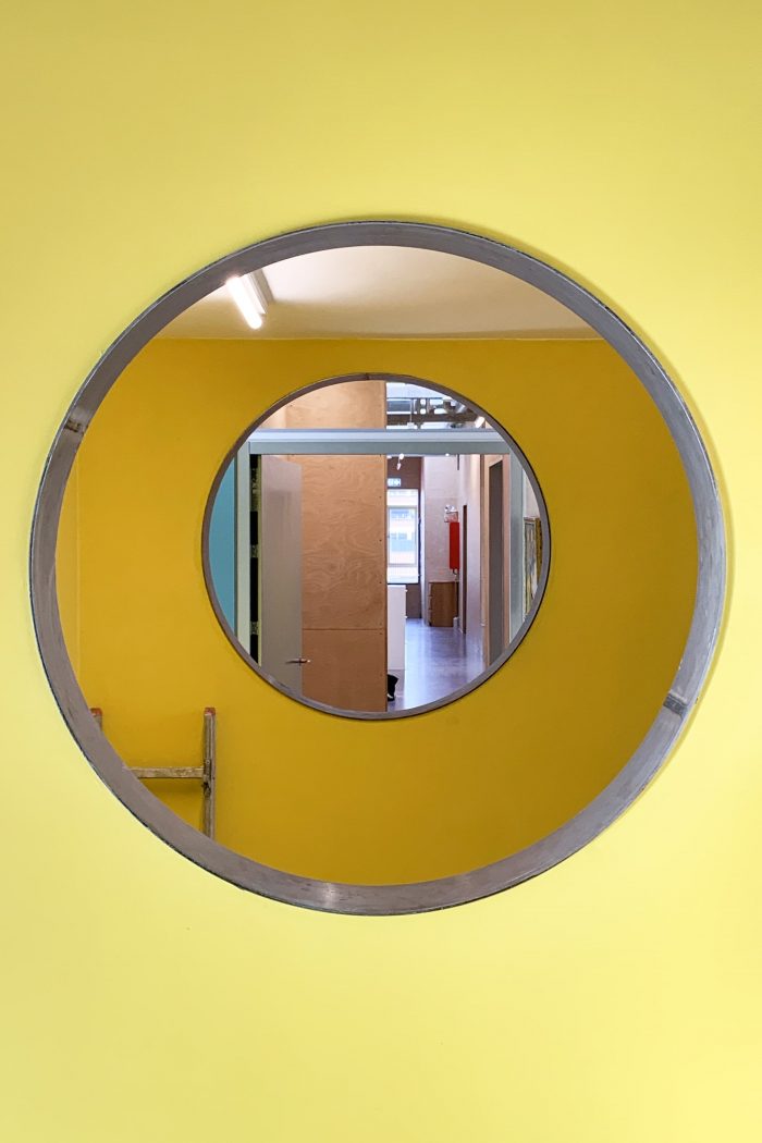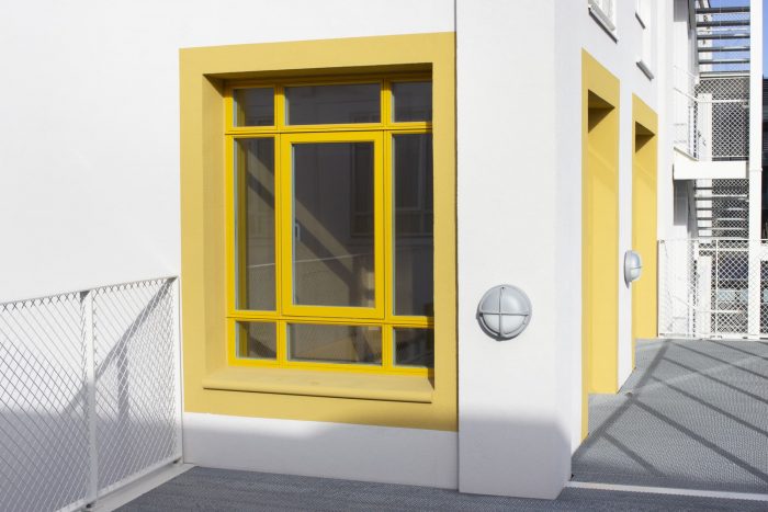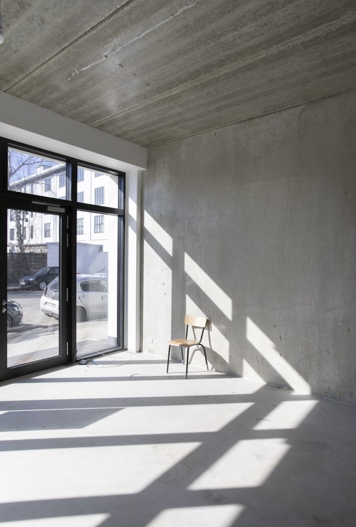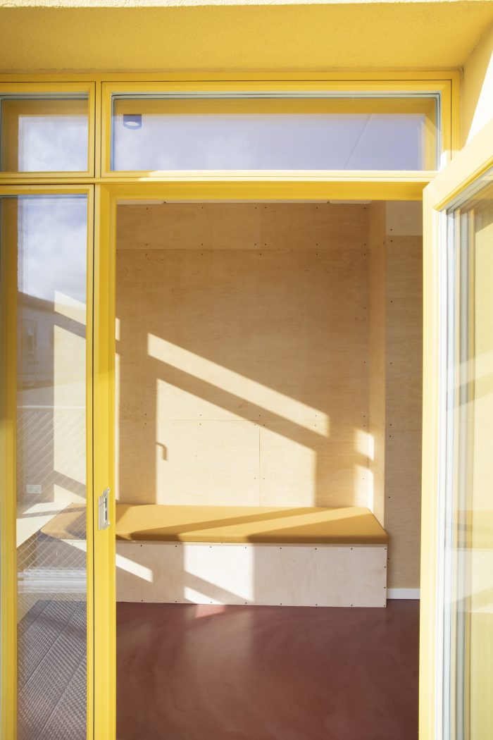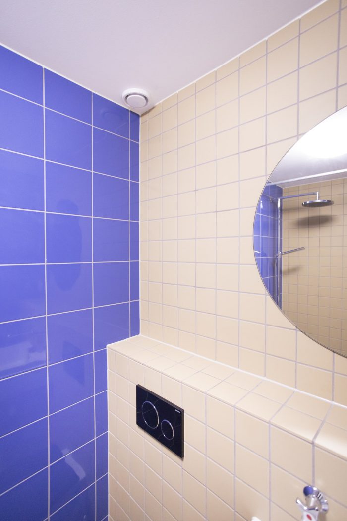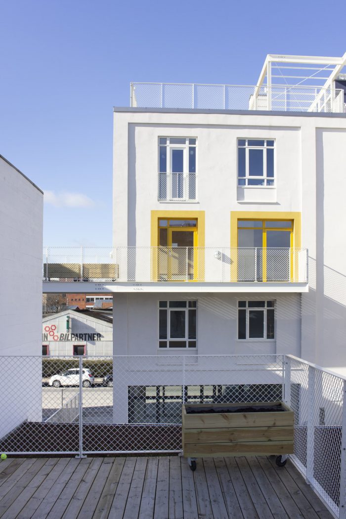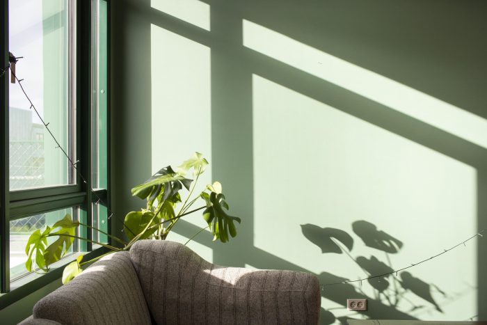 This architectural personality is realized through Spacon & X’s more human scale and somewhat backward approach. The studio, after starting out in 2014, has created award-winning interior projects and was named Dezeen’s Emerging Interior Designer of the Year in 2018, with Filmlageret now being their first completed building as lead architects. Their approach to smaller scale projects is seen at Filmlageret where there is a preservation of small details from the old building that maximizes the character of the architecture, which Spacon & X refer to as “loving the kinks”, and a highly tactile interior experience. This inside-out approach is also seen where the colors of the interior common spaces spill out onto the white exterior.