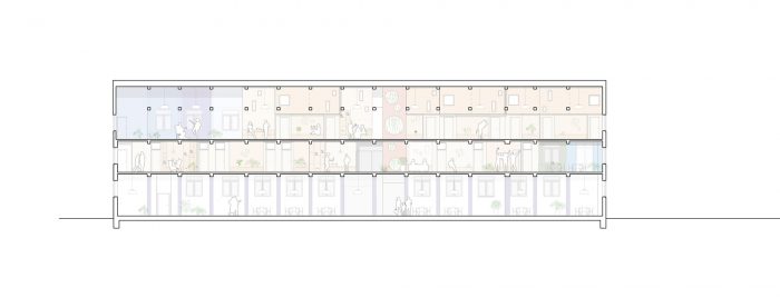 Social Agenda. With Lajboschitz’s social revolution, Spacon & X has developed a diverse, mixed-use program with an aim to create a place for life to grow from. With a diversity of apartment options allowing for different lifestyles, there is room for people to expand their lives here over the years and develop a strong community. Filmlageret’s architectural personality also has diversity, with the buildings celebrating their own oddities and exposing elements usually considered ugly. SPACON & X Inside Out Approach to Design.