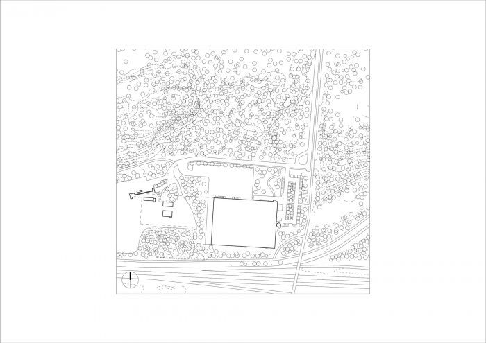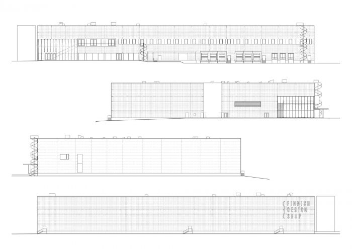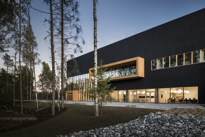 Even though the building couldn’t tell about its use by its form, we didn’t want to design just “a decorated shed” as described in the classic book Learning from Las Vegas. We found the concept for the building in the near surroundings. Right north of the building plot, there is a nature conservation area and the third biggest boulder from the ice age called the Devil’s Nest. The forest theme is visible in the facades having a vertical three dimensional pattern that reminds us of the tree trunks in the surrounding forest.