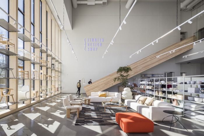 Finnish Design Shop is the world’s largest online store of Nordic design. The company’s fast growth accelerated during the pandemic, as physical stores needed to close their doors. The new building, the headquarters of the company, comprises a logistics center delivering products to over one hundred countries, a showroom, and a restaurant.