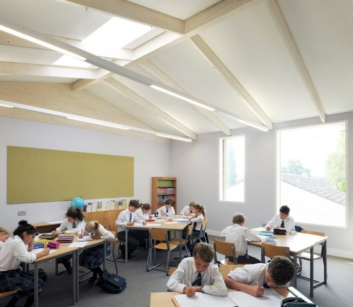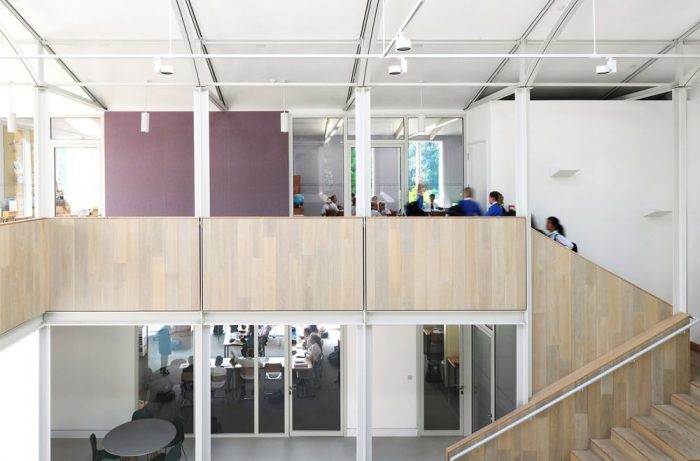 The new building adopts a fabric first approach to sustainability; it is well insulated, naturally ventilated and achieves excellent daylight levels, strategies which minimize energy consumption as well as ensuring a comfortable learning environment. At the Centre’s inauguration, Headteacher Richard Fenwick said: ‘As well as being an architectural and constructional triumph, we believe it makes a clear and strategic statement about the future of education. Its semi-open-plan design allows pupils to learn with an increasing amount of independence, breaking out of the classroom and utilising the technological resources that they have, literally at their fingertips. This will enable them to become equipped for the future as confident, independent and interdependent learners.’