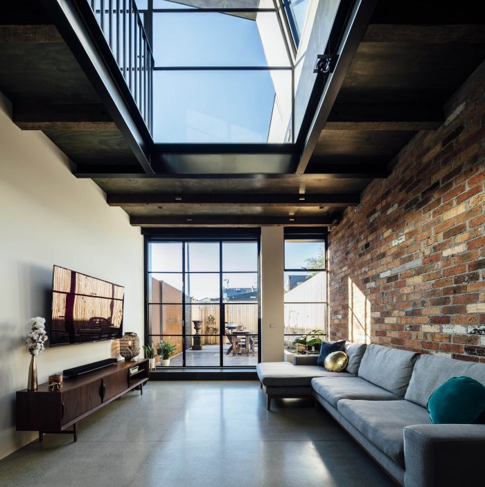 This renovation and extension to a narrow single fronted terrace house was the beginning of a family’s unconventional move from suburbia to inner city Fitzroy. Our clients sought to create an edgy yet comfortable urban home for themselves and their two grown up children.