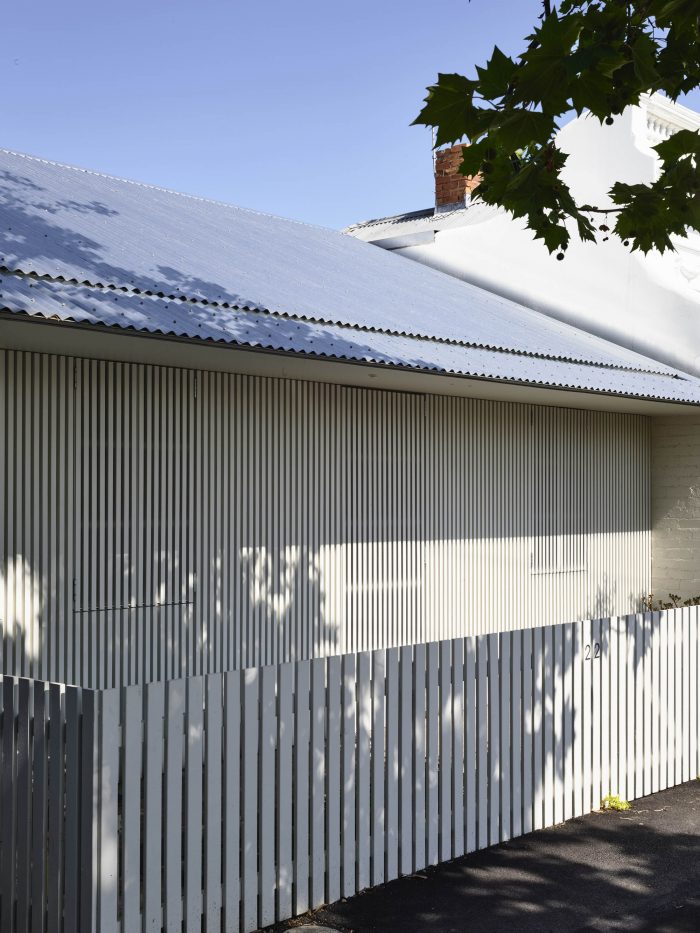 This project is a contemporary response in a heritage context that learns from the vernacular. It puts forward an atypical site response that provides an experience of freedom and openness that is not often experienced in tight inner-city sites. In a quiet heritage street in Fitzroy North, this new family home presents to the public as an abstract silhouette of a double fronted workers cottage.