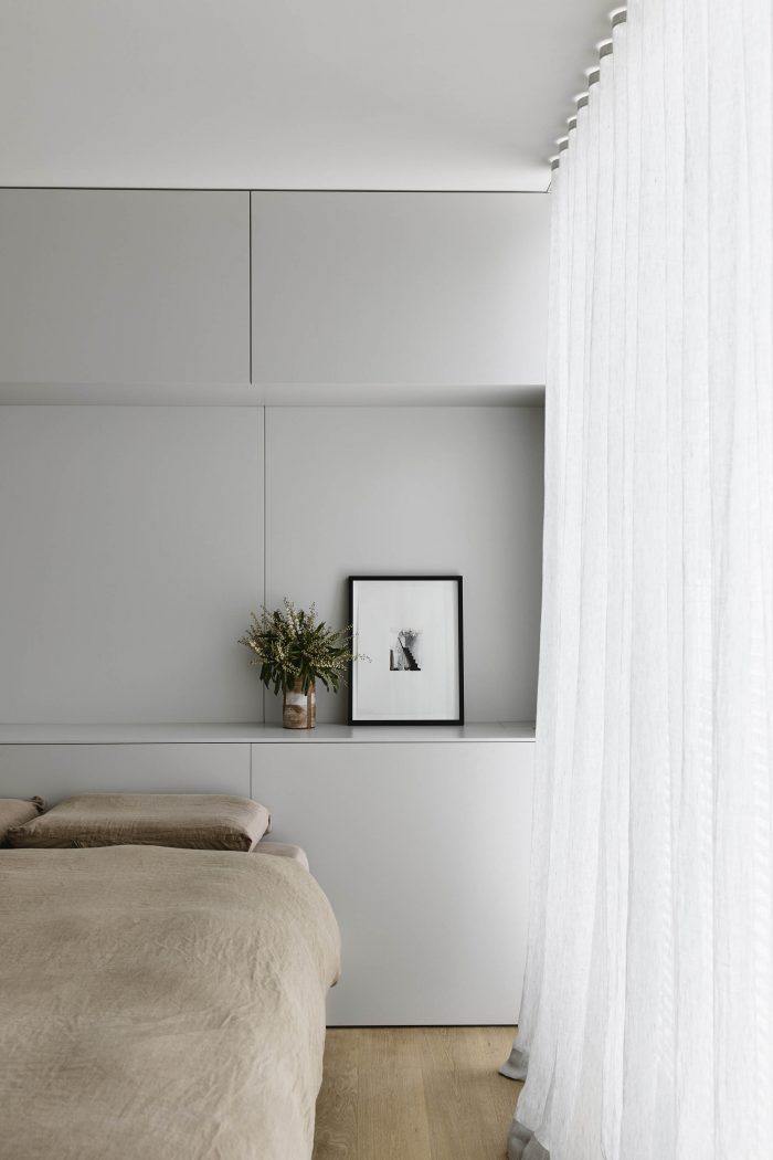 位于花园中的是厨房、客厅和餐厅空间,由边界到边界的玻璃开口界定,允许无限的交叉通风。在整个房子里,有一个连续的隐藏主题,特别是在门、细木工制品、服务、排水沟细节和储水。这使建筑更加简洁,反过来又加强了生活在花园中的想法。与Eckersley花园建筑事务所的紧密合作使得这一核心概念得以实现。住在花园里,睡在花园里"。