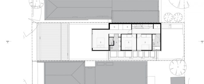 This project explores abstraction and rethinks the typical urban massing of the terrace house typology resulting in an experience more connected to nature than built form.