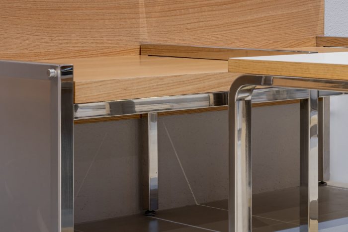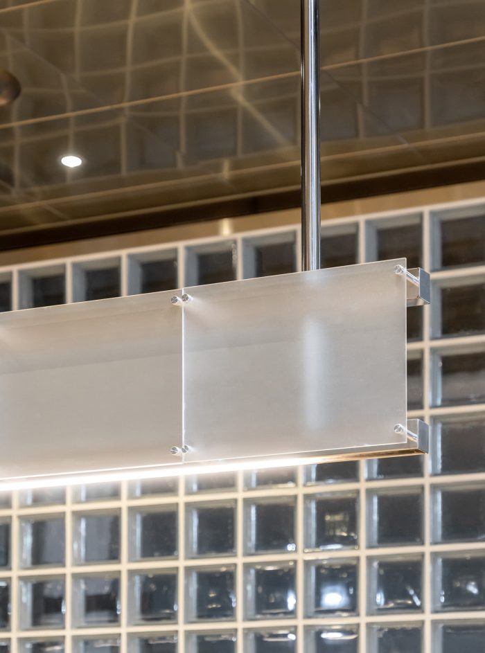 By using the material’s characteristics of diffusing light, we wanted to design lights to be softer. Also, it presents different moods depending on the material behind it. (One side of frosted clear acryl has matt finish rough texture.) For example, when we put wood behind it gives a warm mood and if there is stainless steel turns into a cool mood.