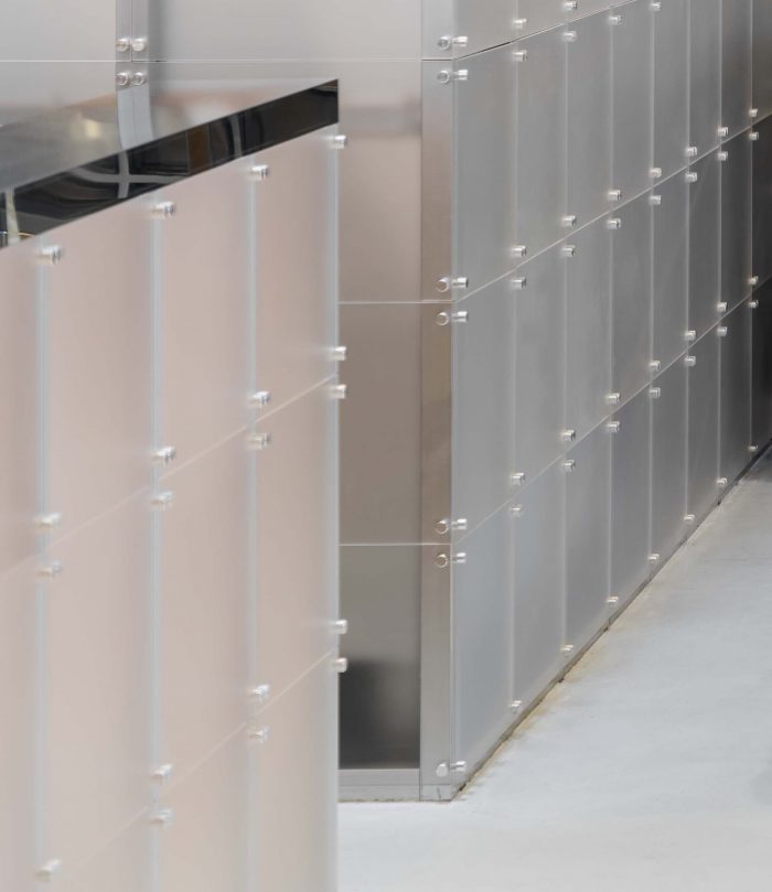 You can see contrasting silhouettes on the baking room wall, finished with clear glass brick, that create a winding silhouette scene and contrast to the different silhouettes created by diffusing lights and frosted acryl, at the same time perfect separation of the movement path. We can say that this site is the integration of all materials. Our team's desire was to create a space where people could enjoy their time at Flink experiencing how different materials enhances each other’s attractiveness perfectly by creating various moods.