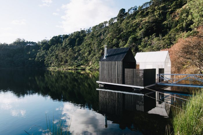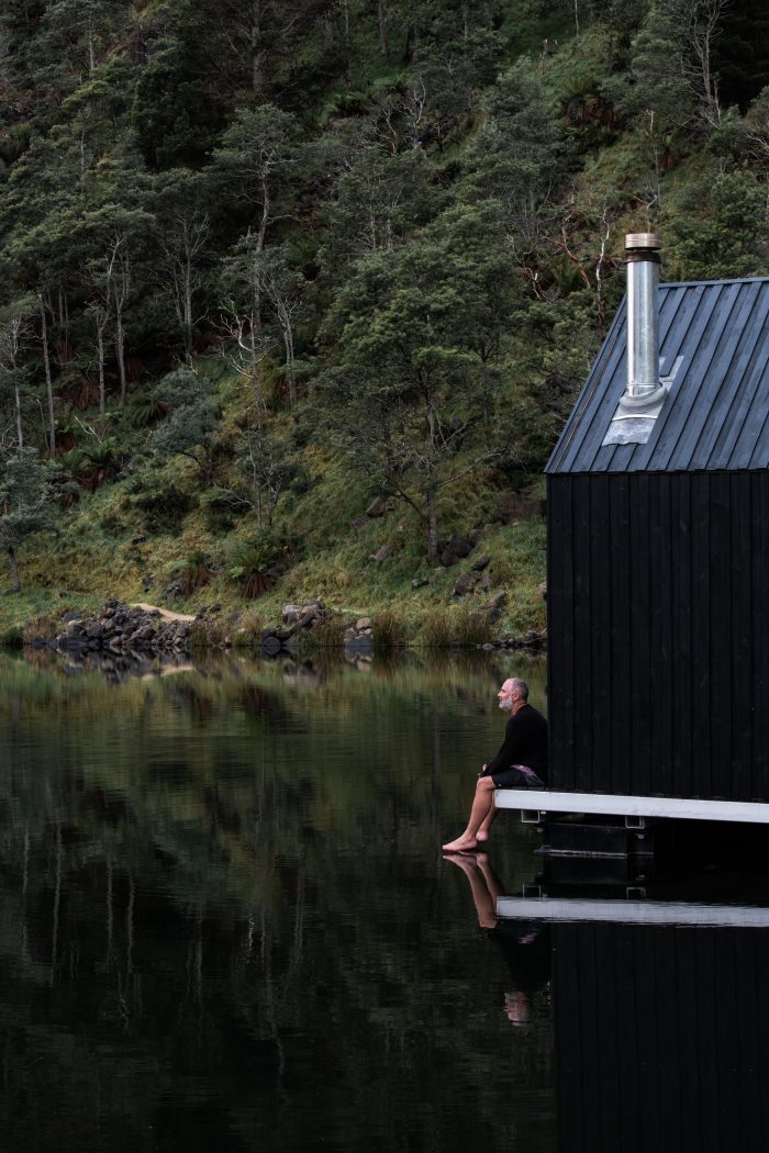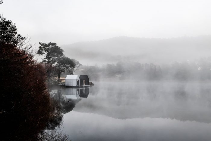 On a lake, in a small North East Tasmanian town, floats a sauna.