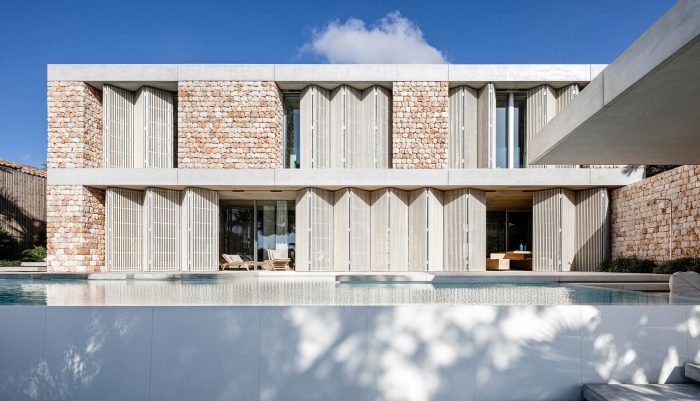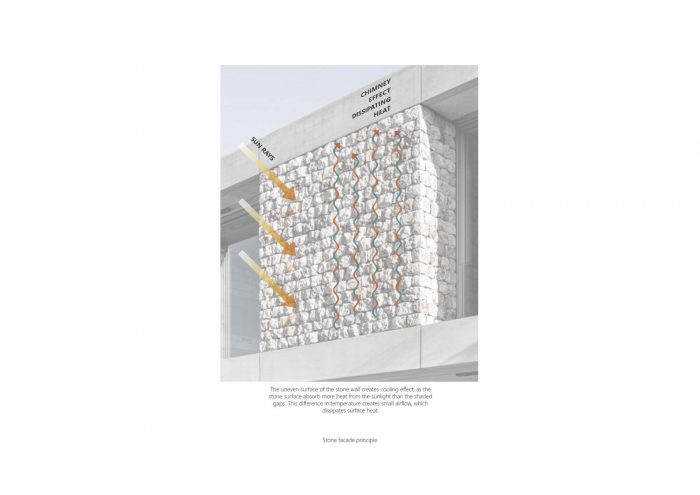 Our design reflects it by using traditional techniques and materials as stones from a local quarry. The stone facade, which is based on a typical design that can be found all over the island as a fence or retaining walls that are constructed by using a traditional dry technique 'Pedra en sec'. This local design has been declared as an intangible Cultural Heritage of Humanity by UNESCO in 2018.
