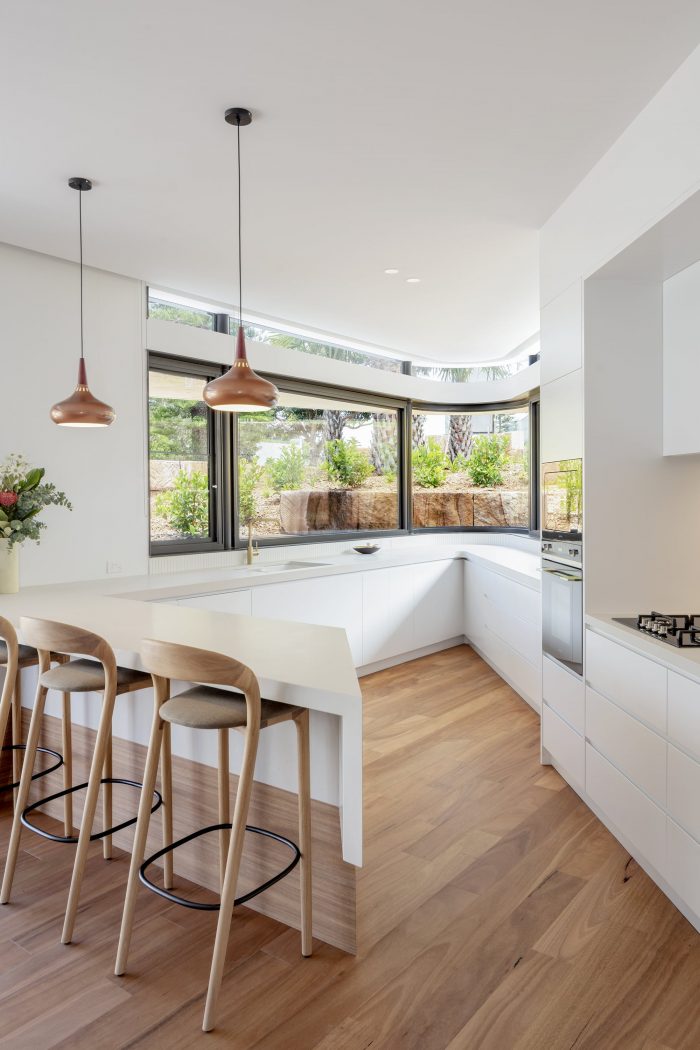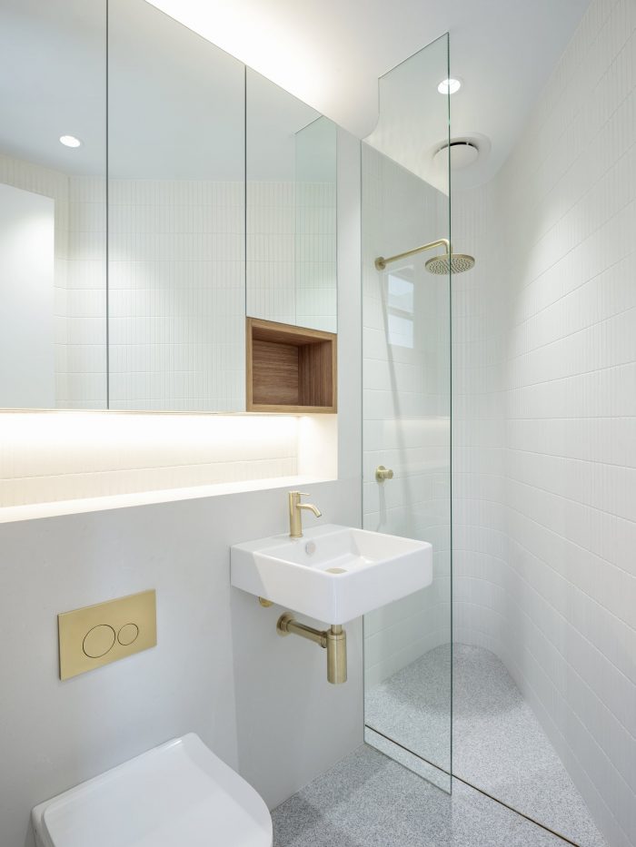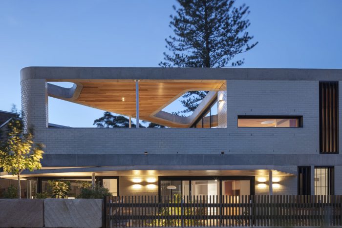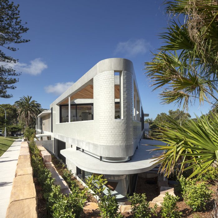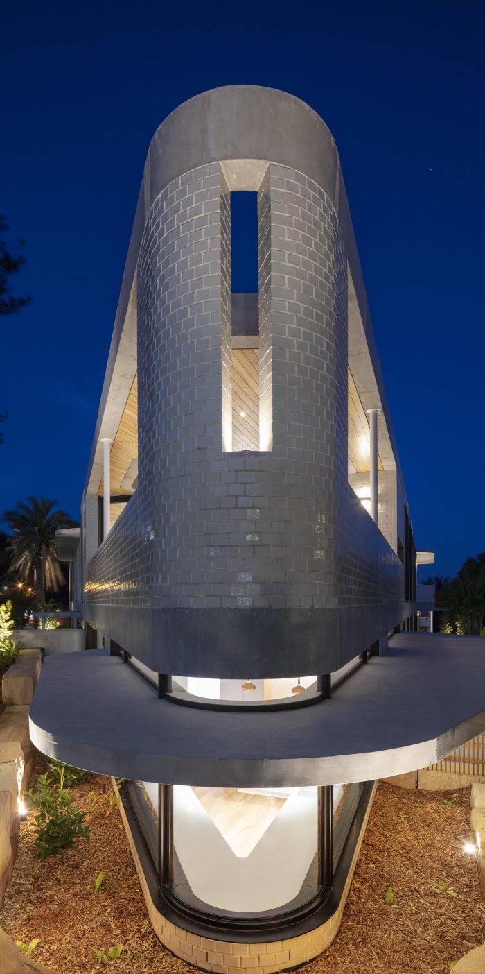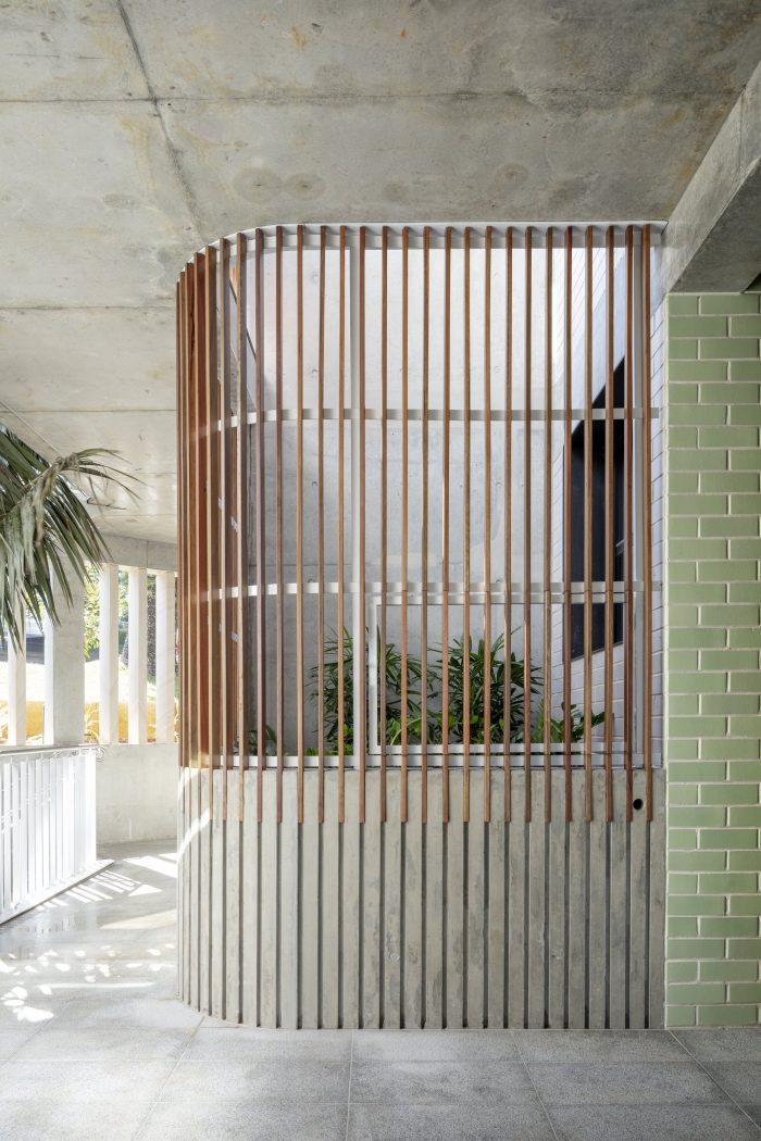 With a nod to the rounded forms and aqueous colors of the proximate ocean-worn coastline, the building celebrates the plastic qualities of concrete and the capabilities of the shimmering pale green bricks. Full-height internal doors and external openings increase the sense of space. Operable vertical external louvers to windows allow residents to modulate the level of privacy and the entry of light, air, and sound. Australian hardwood timber ceilings and floors provide warmth and texture.