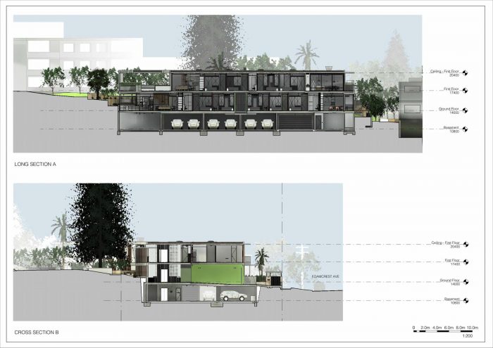 The unique planning, level of craftsmanship, detail, and the use of high-quality materials demonstrate a level of commitment to an architectural solution by the developer which is unusual in a small-scale multi- residential speculative development, particularly on the Northern Beaches. It is hoped that this new benchmark will improve the quality of similar development in the area. The horizontality of the overall form distinguishes the project from typical multi-residential profiles, establishing a unique dialogue with the public realm.