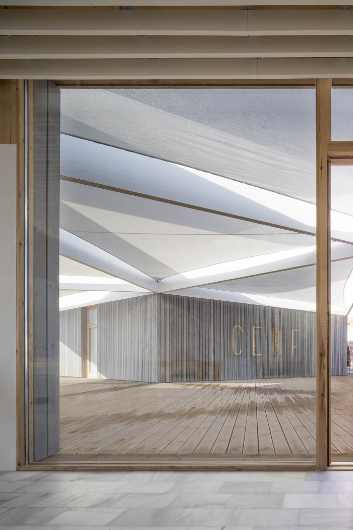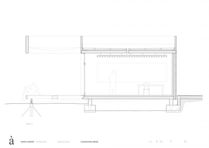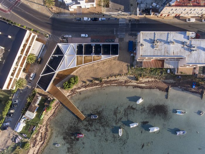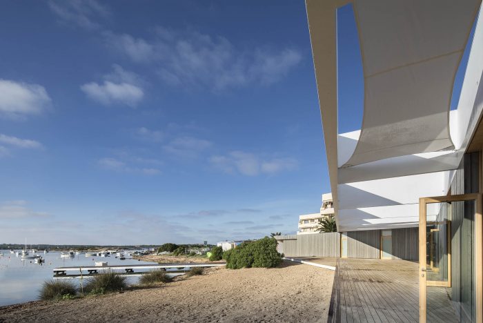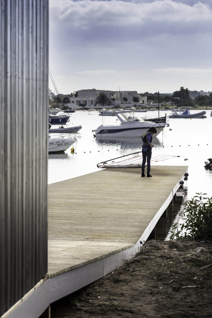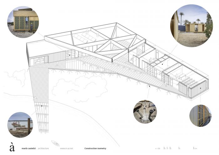 The dock resorts to the traditional technique of wooden piles submerged below sea level, while the outer platform is suspended on a minimum foundation, prefabricated and reversible, based on surface micro-piles. Under bio-construction criteria, we have opted for a reduced range of materials basically of natural origin, free of PVC and other potentially harmful synthetic materials. This has turned into hygroscopic and water vapor permeable enclosures, that are energy efficient and maintain a healthy indoor environment.