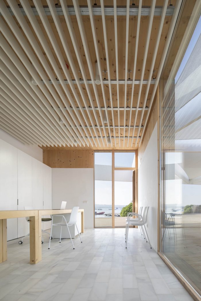 Through tectonics based almost on a single material, a lightweight building has been erected, built in dry and with low environmental impact. Similar to the boathouses that traditionally were built on the island coast, wood is the material par excellence, manifested in different forms and types depending on the requirements. Thus the main structure made with CLT has allowed bringing together structure, enclosure, and coating in most of the panels of cross-laminated timber. A harmony that continues in the chosen solution of a ventilated facade, where battens and coating slats are executed in pine R.3.2 taking over time a characteristic gray patina.