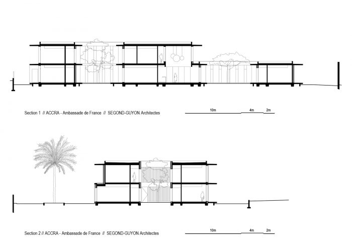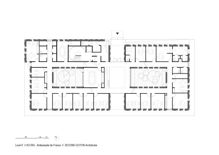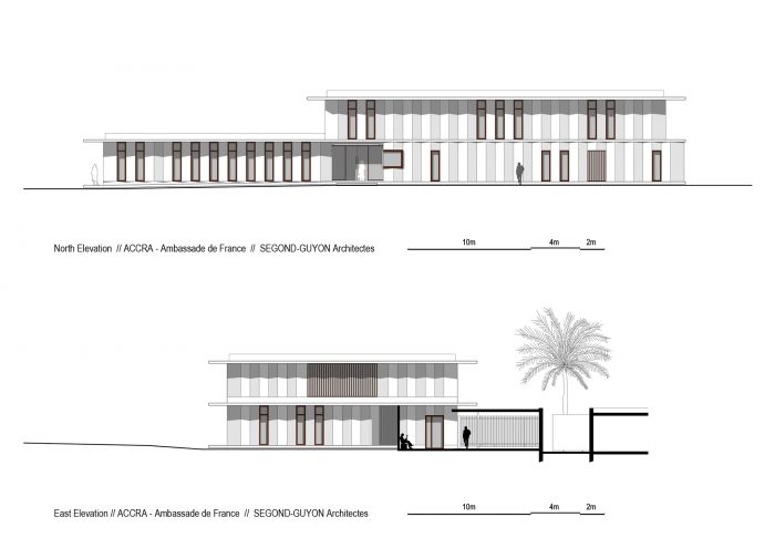 该项目位于法国驻加纳大使官邸内。该项目之所以引人注目,是因为该建筑的建筑价值,50年代罕见的殖民建筑,以及3公顷公园的景观质量。新使馆的建筑语言从该地的这两个主要组成部分中找到了灵感。
