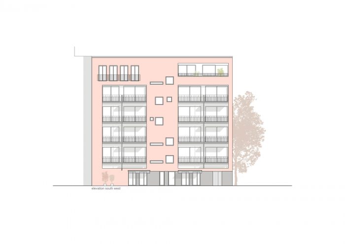 Finished in late 2020 Frobenstraße 1 offers for renting 11 variously sized apartments and 2 commercial units in an area of fashionable shops, galleries, street prostitution, social housing, and huge investor-driven developments for owner-occupied apartments.