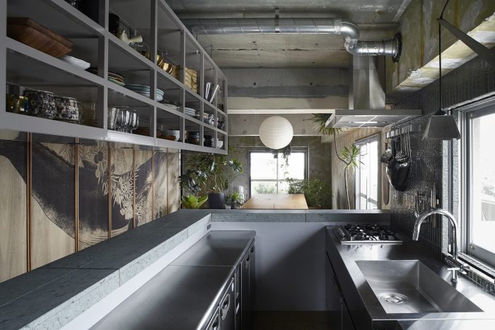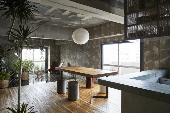 We've purchased the 33-year-old condominium with views of the Koto Canal in three directions and renovated the four-bedroom unit into a one-room unit that integrates work and residence. The plan was to overlap the living and working areas rather than separating, and the nine fittings that appeared, as a result, were treated like a canvas for a "fusuma (sliding door)" painting. This 33-year-old condominium surveys the canal on the south, west, and north sides. The former four-bedroom unit was renovated into a one-room unit that integrates work and residence.