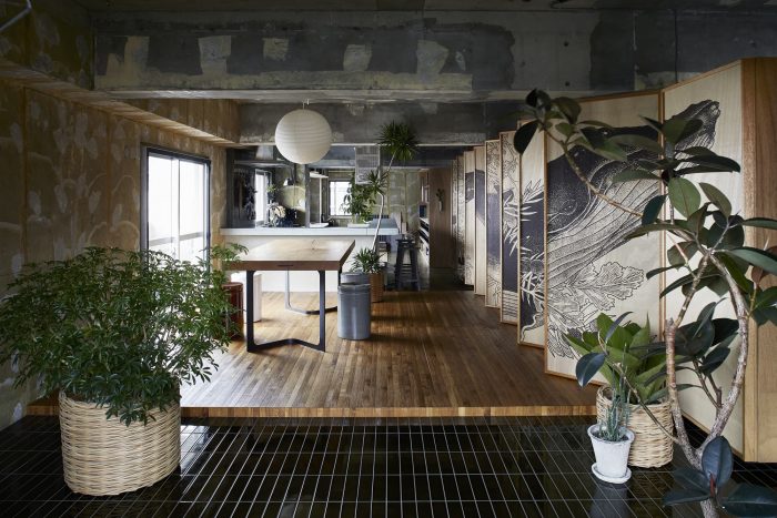 When one confronts Hasegawa Tohaku's Pine Trees screen, it feels like one is standing in the foggy space inside the painting. Barrier paintings such as fusuma-e (sliding door paintings) and byobu-e (folding screen paintings) can create a "depth out of phase" that differs from the xyz axis, depending on their size and the interaction between the scene depicted and the viewer's imagination. We believe that Japanese barrier painting culture has an aspect of acquiring an augmented reality sense of depth with its development, in which people's imaginations move back and forth through space. Here, the aforementioned nine consecutive fittings were treated as a canvas for the fusuma paintings. We wanted to create a new depth within the concrete box of a condominium room in the city.