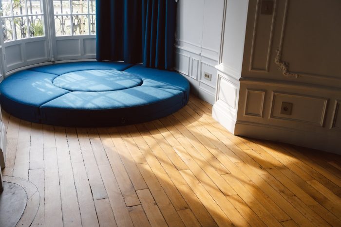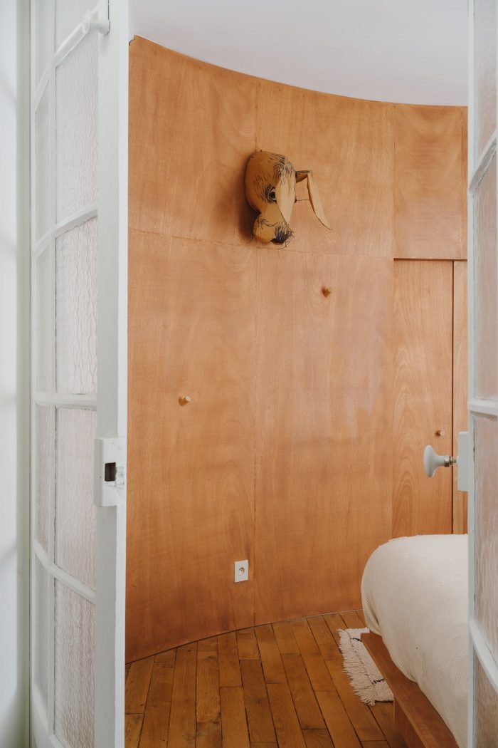 Combining added forms and existing geometries, sculpting sequences, amplifies the pre-existing theatrical character. The composition of this 100 square meters Haussmannian flat, whose rooms are mostly devoid of corners, the walls curved, covered with moldings, and some doors hidden, was the fundamental inspiration for this architectural renovation project. The original plan is enlarged, and the lines of force are extended.