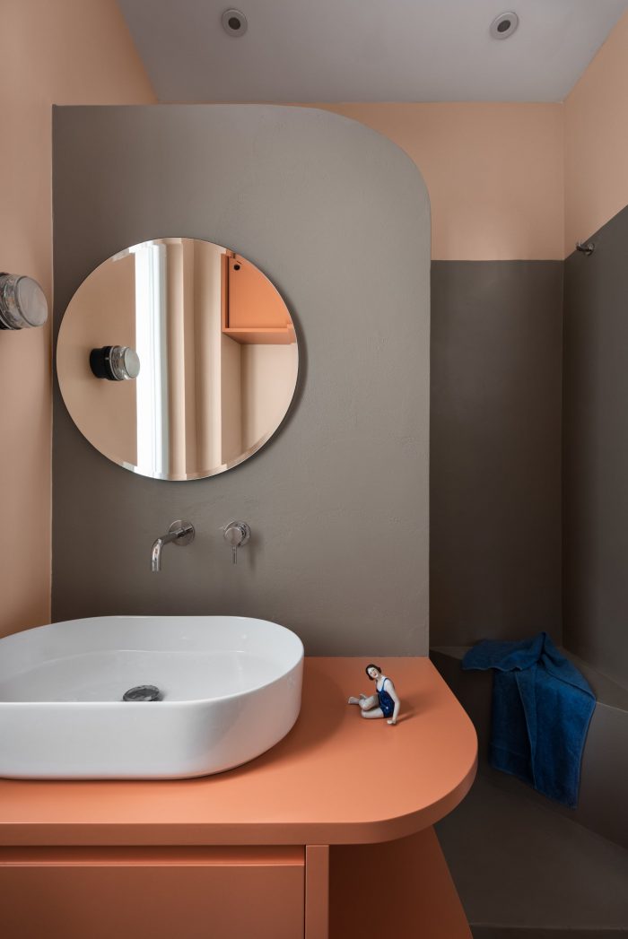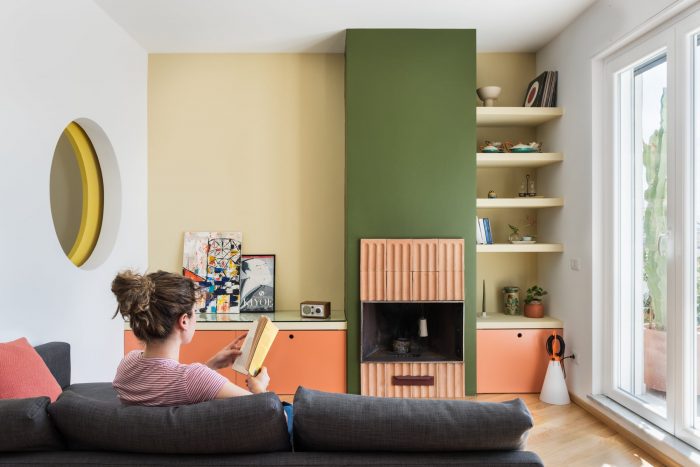 The stylistic approach, which matured with the client through long calls during the Lockdown, is characterized by the respect for the pre-existence of the '50s both at the conservative level (doors, railings) and with reinterpretation interventions, not so much as design as atmosphere: the wallpaper in the bedroom, the pastel colors of the kitchen, the fireplace and the sliding panels recall the vitality and optimism typical of the second post-war period.