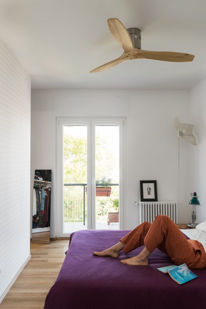 A forest of partitions imprisoned the space separating it from the large terrace from which stood out, like the skeleton of a cathedral among the houses, that icon of industrial archeology that is the Gazometro. The renovation, therefore, consisted in removing the elements of separation from the outside: with the exception of the bedroom in front of the entrance now all rooms are open and look out.